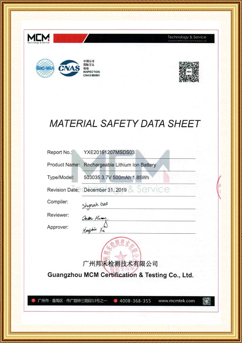 YXE20191207MSDS03 MSDS(煜信恩 503035)